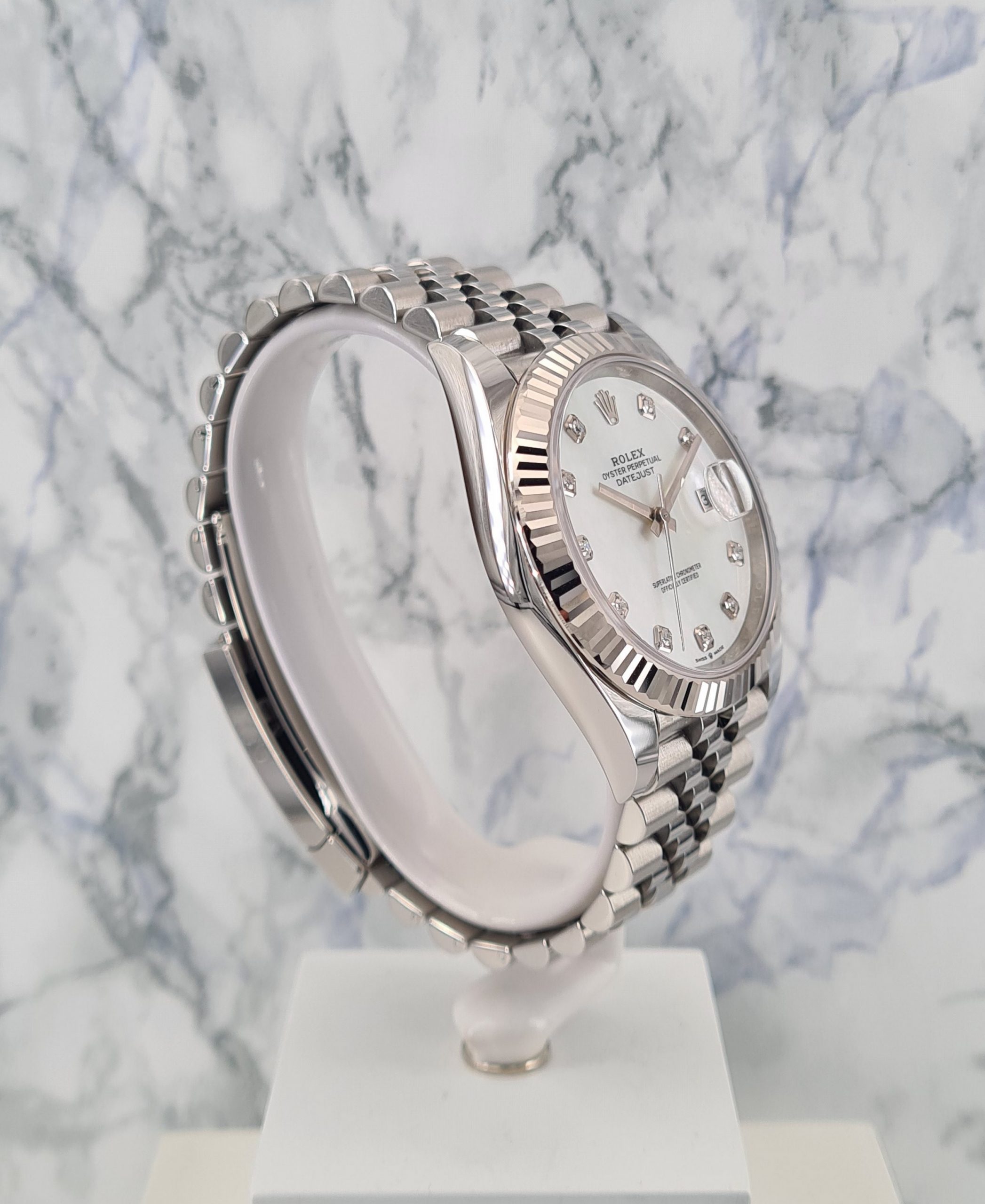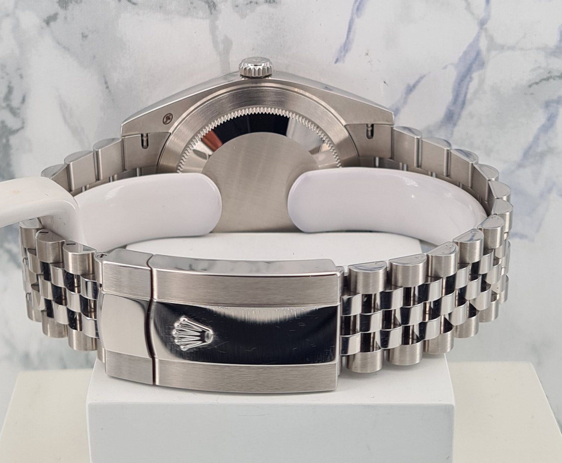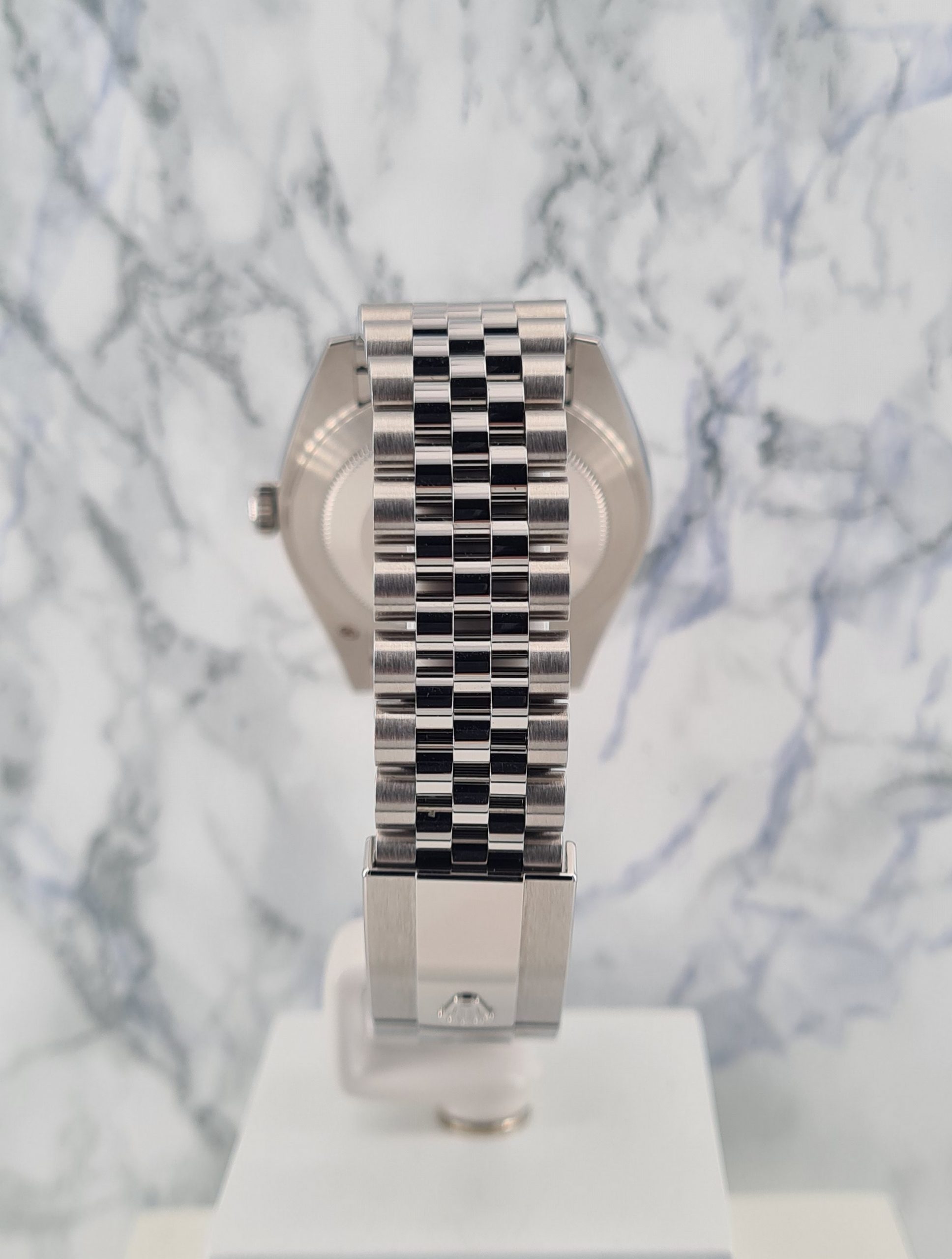 Le boîtier Oyster de 41 mm de la Datejust II, garanti étanche jusqu’à 100 mètres, est un exemple de robustesse. Sa carrure aux formes caractéristiques est taillée dans un bloc massif d’acier 904L particulièrement résistant à la corrosion. Le fond cannelé est hermétiquement vissé à l’aide d’un outil spécial propre aux horlogers Rolex.