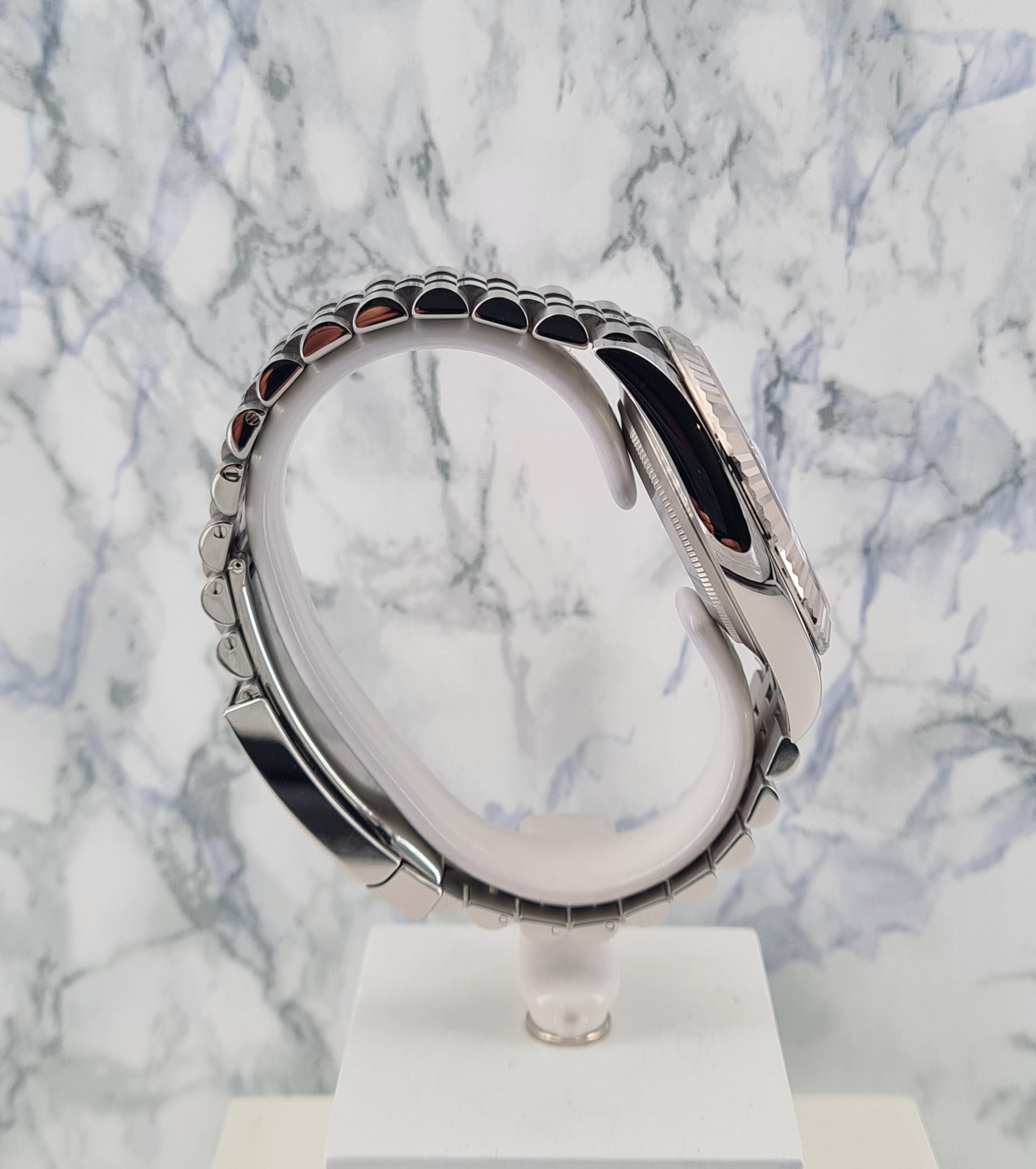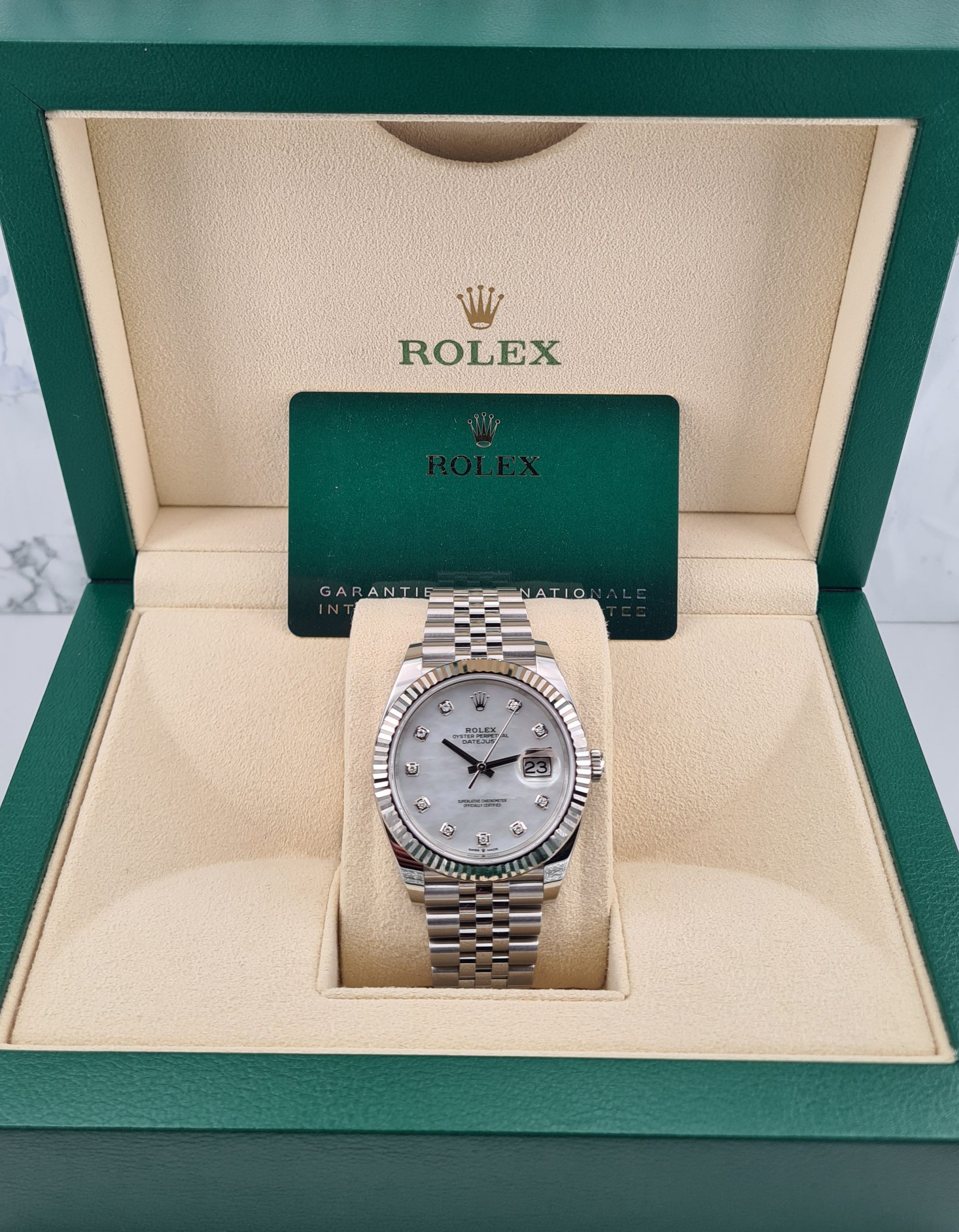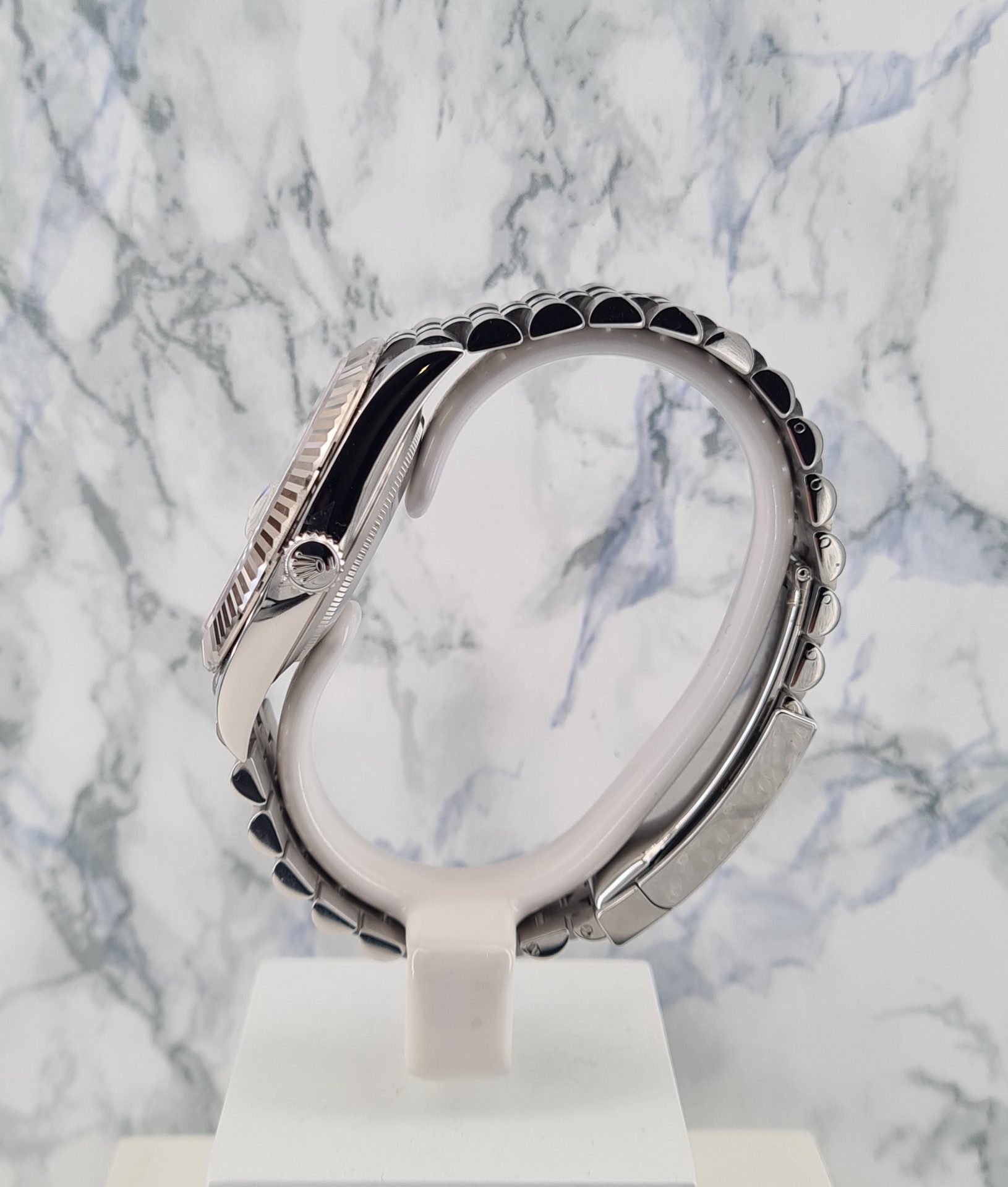 Le boîtier Oyster de 41 mm de la Datejust II, garanti étanche jusqu’à 100 mètres, est un exemple de robustesse. Sa carrure aux formes caractéristiques est taillée dans un bloc massif d’acier 904L particulièrement résistant à la corrosion. Le fond cannelé est hermétiquement vissé à l’aide d’un outil spécial propre aux horlogers Rolex.