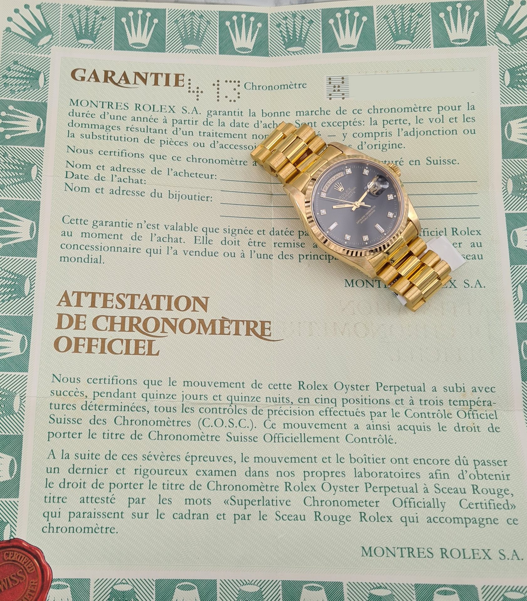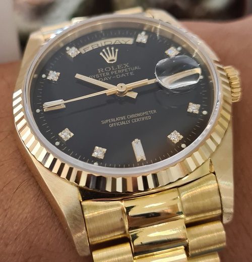 Rolex Day-Date Vintage 18039 Cadran Argent Index Diamants de 1979