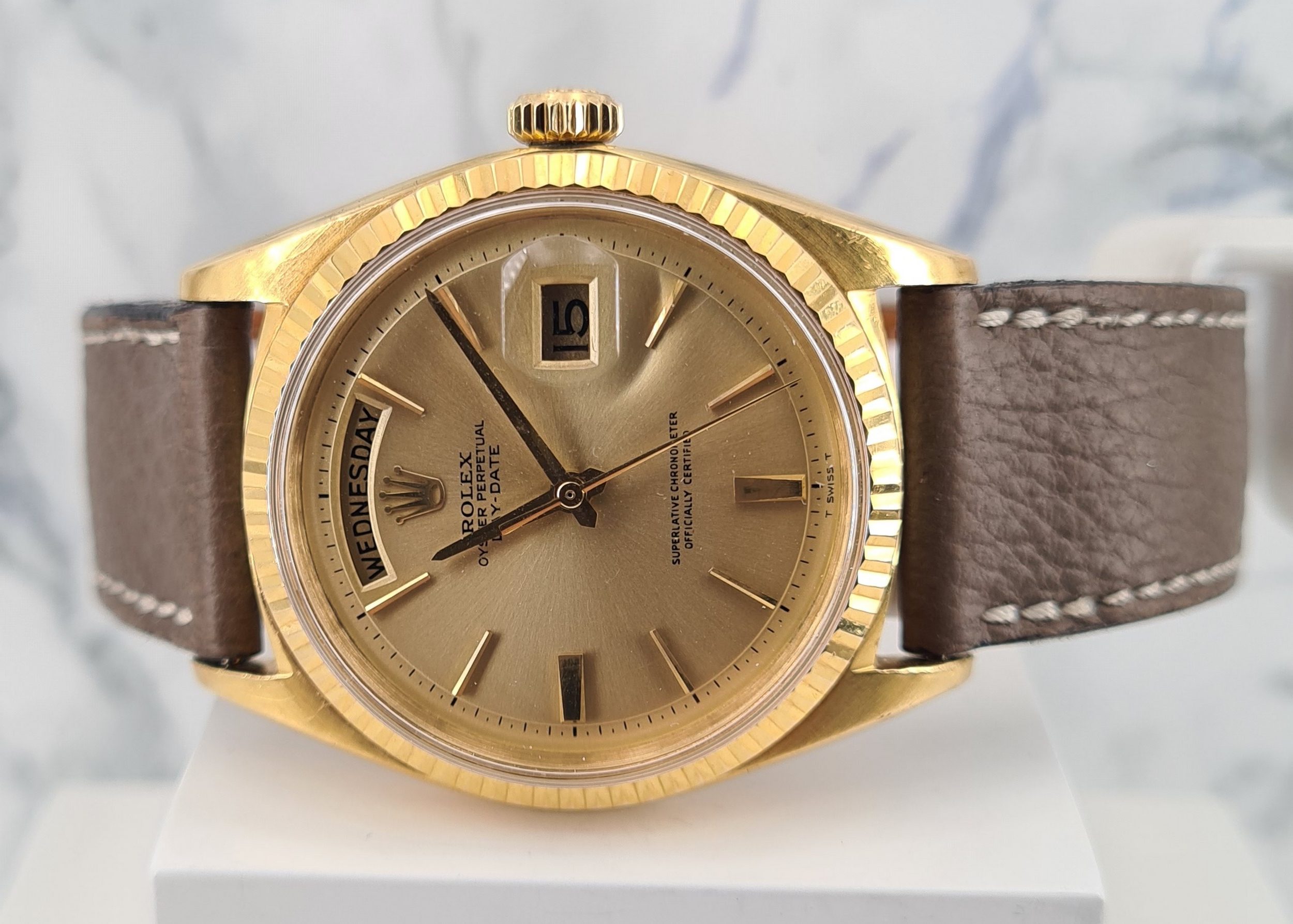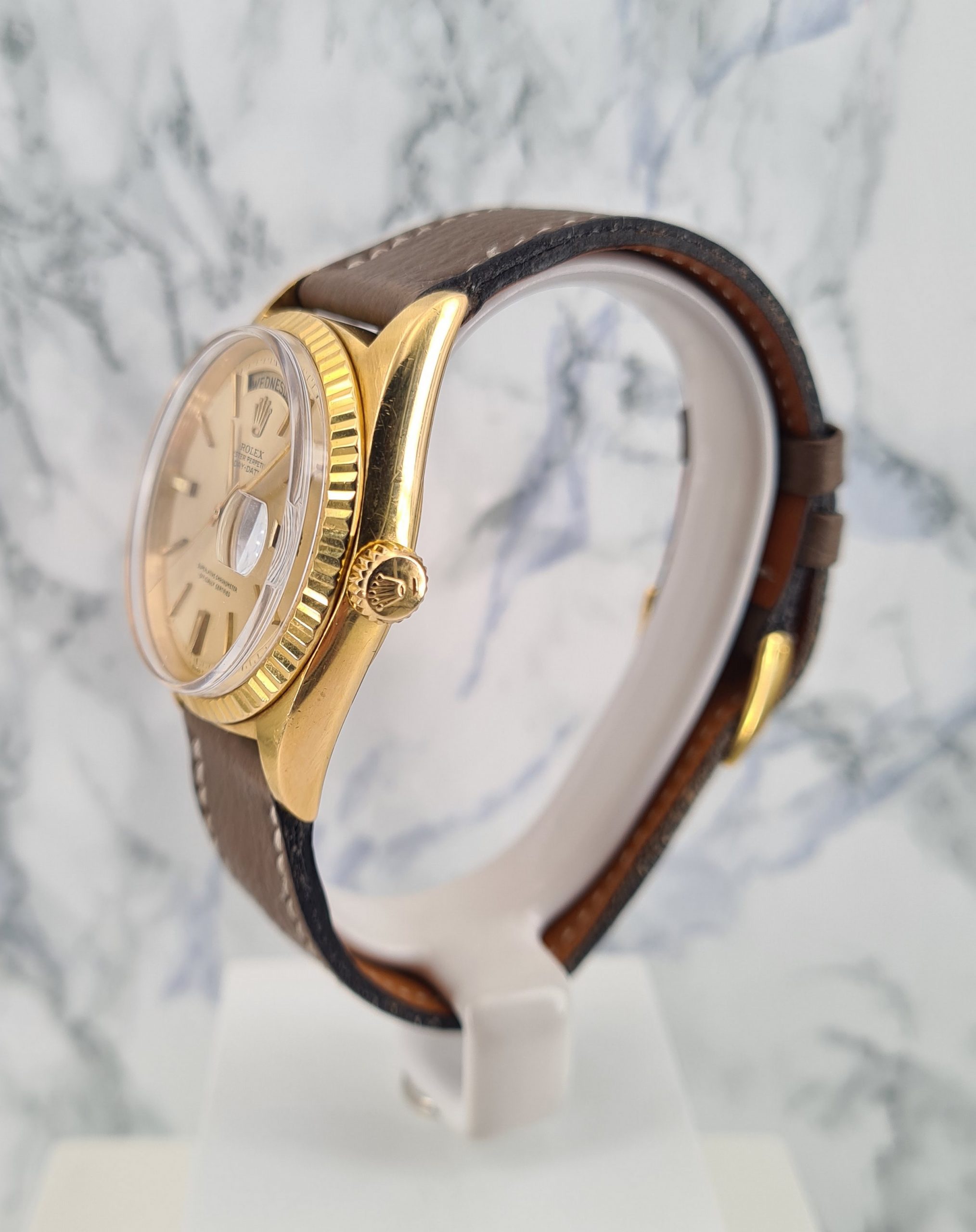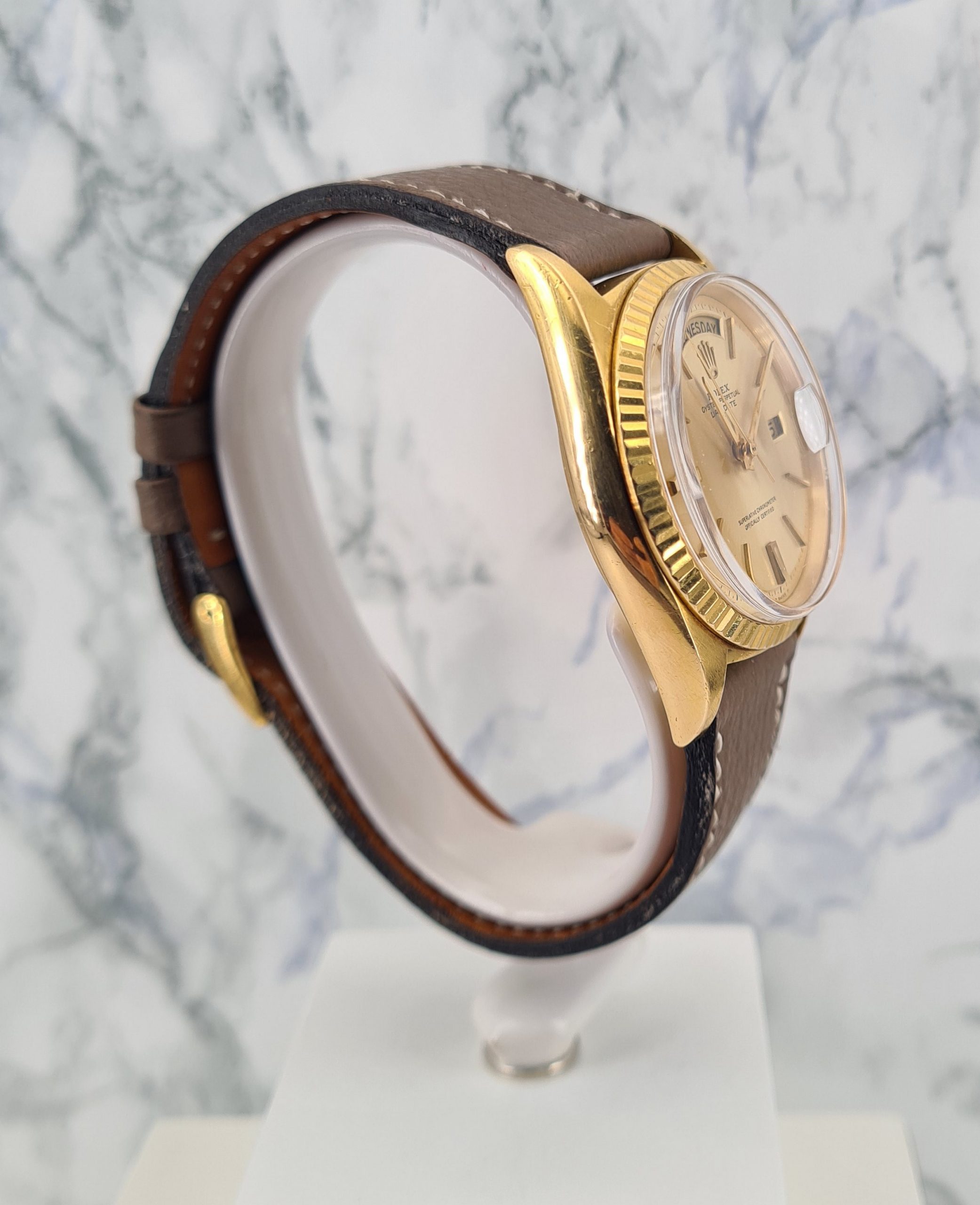 Lancée pour la première fois en 1956, la montre Day Date révolutionne le monde de l’horlogerie en affichant le jour de la semaine en toutes lettres, mais également en différentes langues. Cette innovation la rend rapidement très populaire.