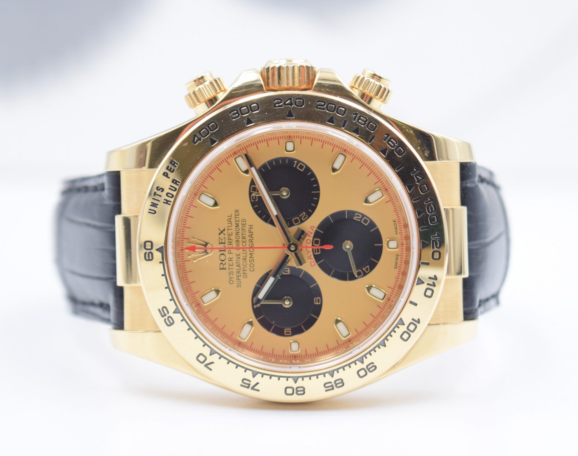Modèle mythique pour homme en or ou acier, elle est reconnaissable par sa lunette tachymétrique et ses compteurs de chronographe, permettant aux pilotes de mesurer aisément leurs vitesses en course