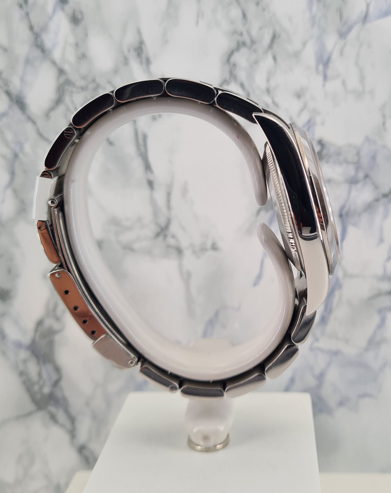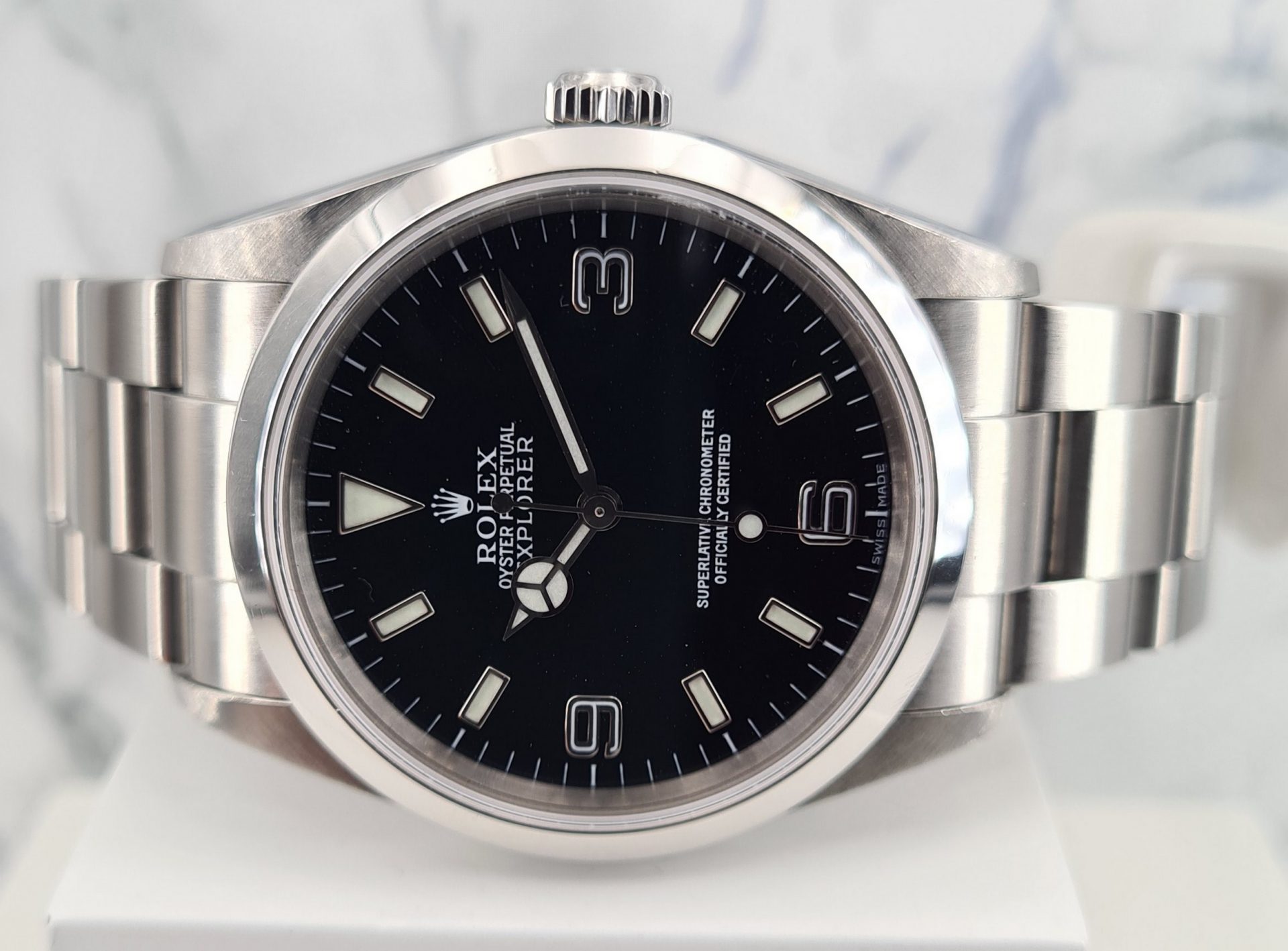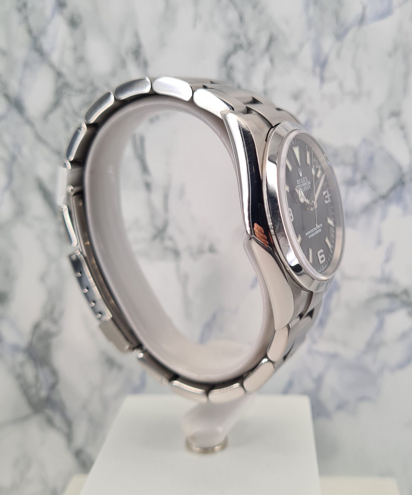 On retrouve dans la version 14270 tout ce qui nos plaît tant chez l’Explorer. Un cadran d’une sobriété exceptionnelle, une belle lisibilité, des aiguilles de type “Mercedes“, une montre fine, qui lévite presque sur le poignet. Nos 3,6 et 9 sont toujours présents.