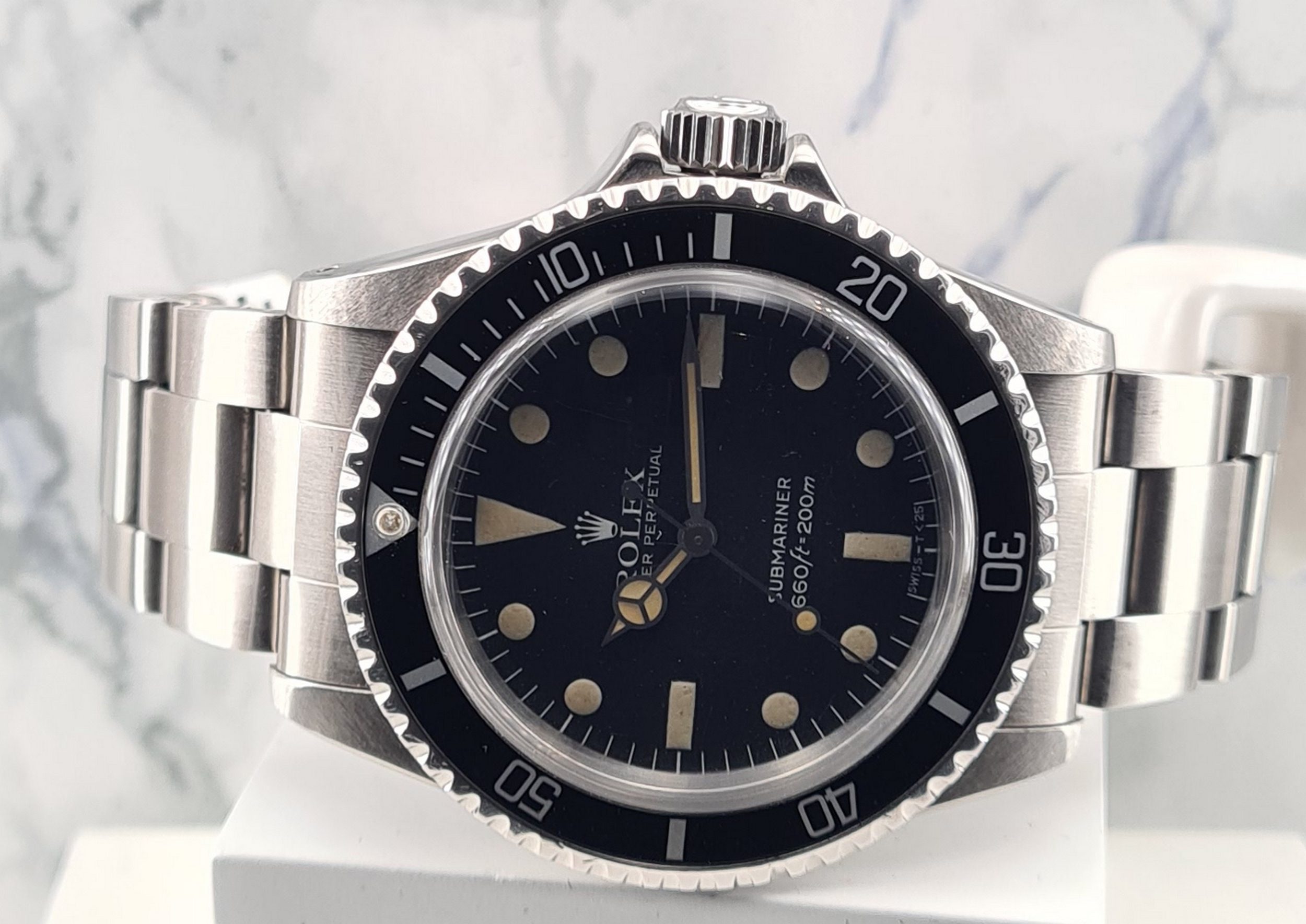 Les montres ROLEX Submariner 5513 sont particulièrement intéressantes et appréciées par les collectionneurs car elles sont dotées de cadran mat, d’index peints et aiguilles en Tritium.
