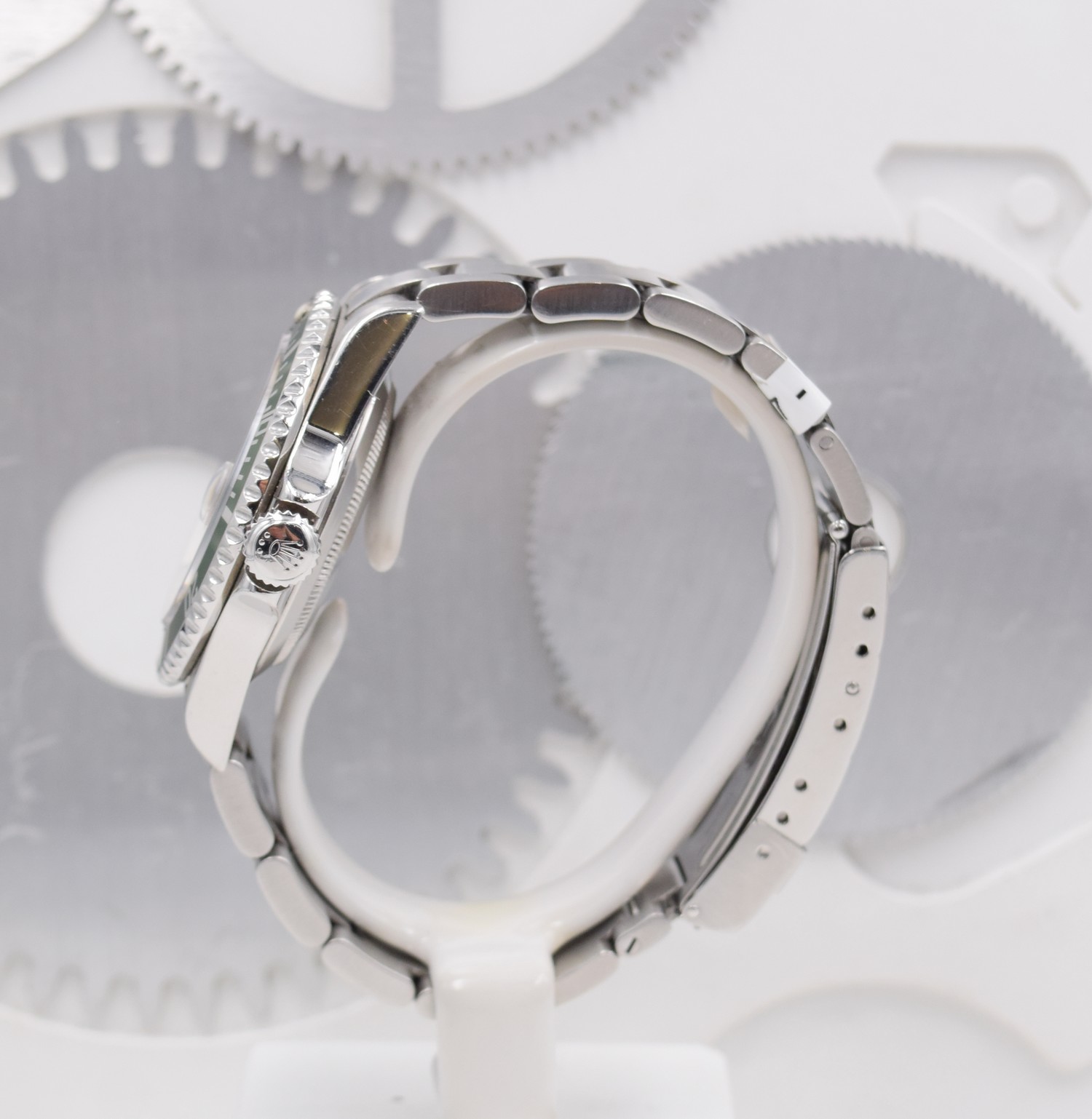Egalement surnommée « Kermit », cette Submariner à lunette verte et cadran noir a été introduite sur le marché à l’occasion du 50e anniversaire de la célèbre montre de plongée de Rolex, dont elle est une déclinaison particulière. Attention cependant à ne pas confondre la « Kermit » avec la Submariner « Hulk » réf. 116610LV qui, en plus de la lunette verte, affiche également un cadran vert.